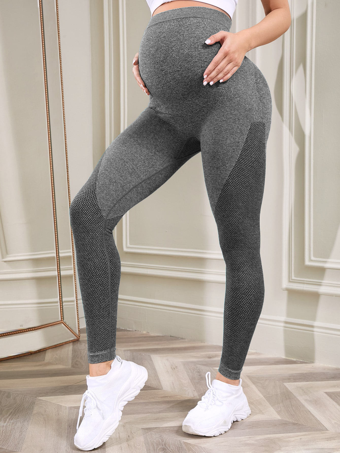妊娠中のお腹をやさしく包み込むマタニティ専用スパッツです。